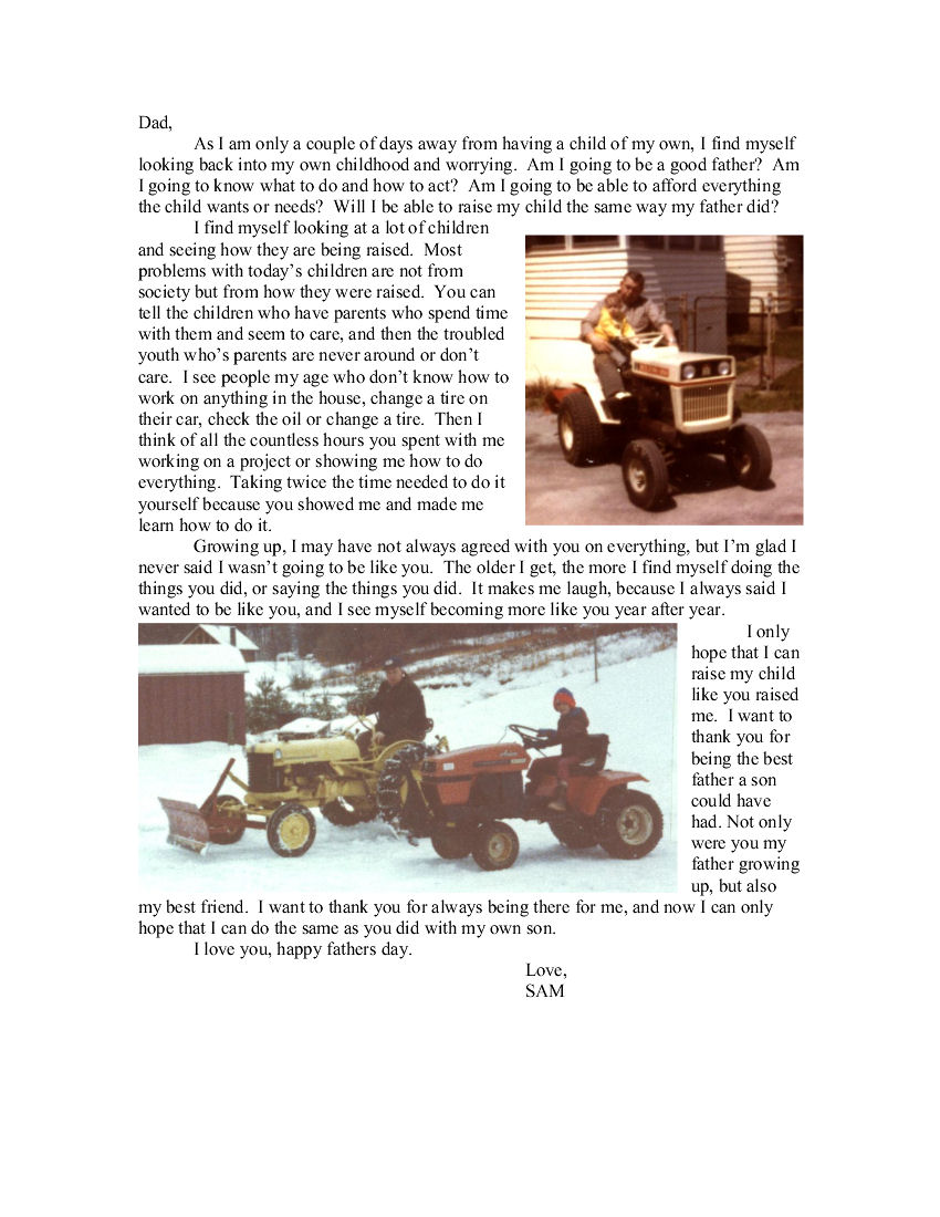 This was a note I wrote to my father on Saturday June 17th, 2000 (Two days before my son was born) for Father's Day